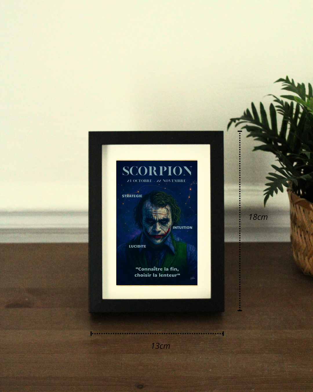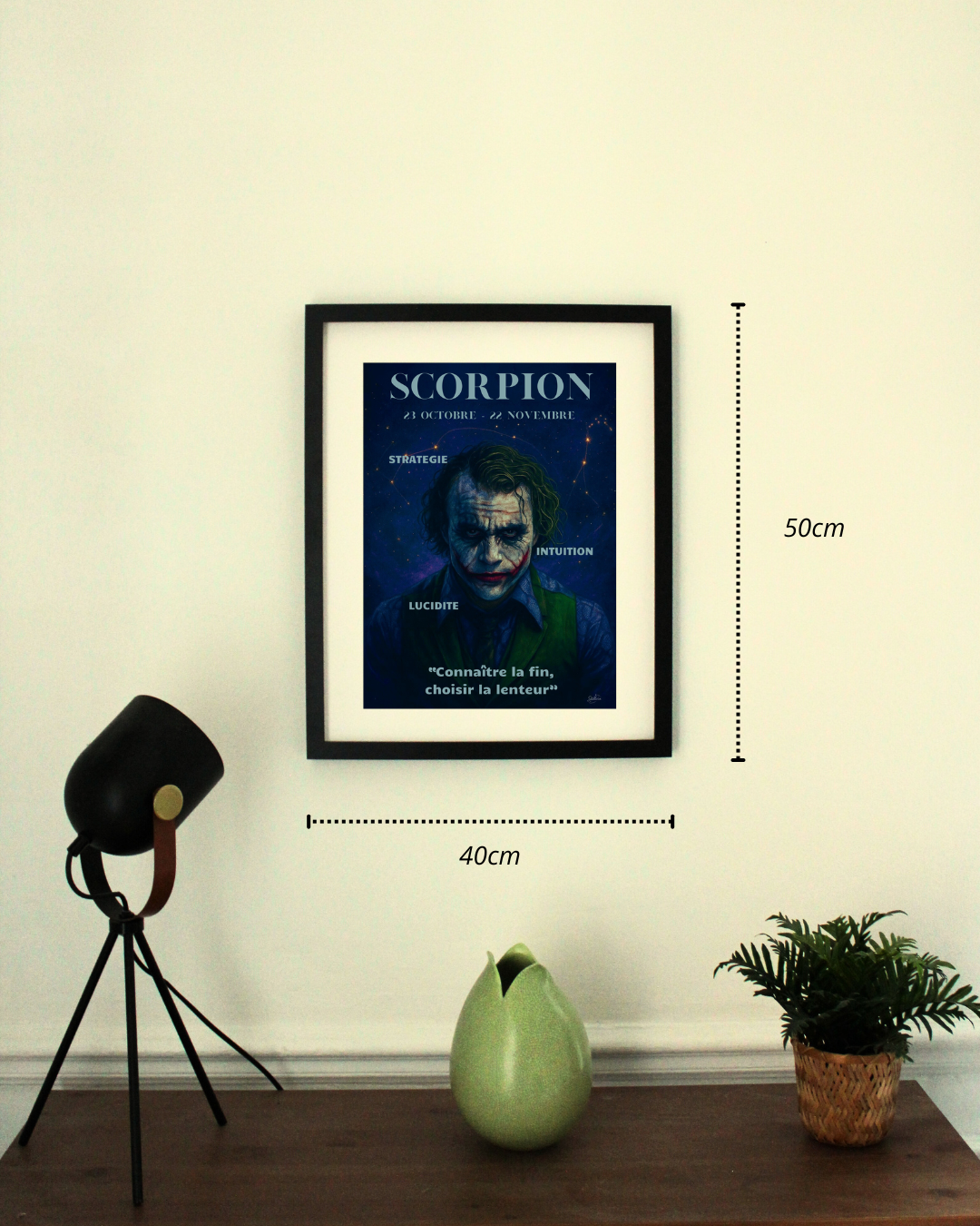 Célébrez votre signe astrologique avec cette magnifique affiche du Scorpion associée au héro du célèbre film de "The Dark Knight". Design élégant et intemporel, parfait pour décorer votre intérieur dans une ambiance de cinéma.