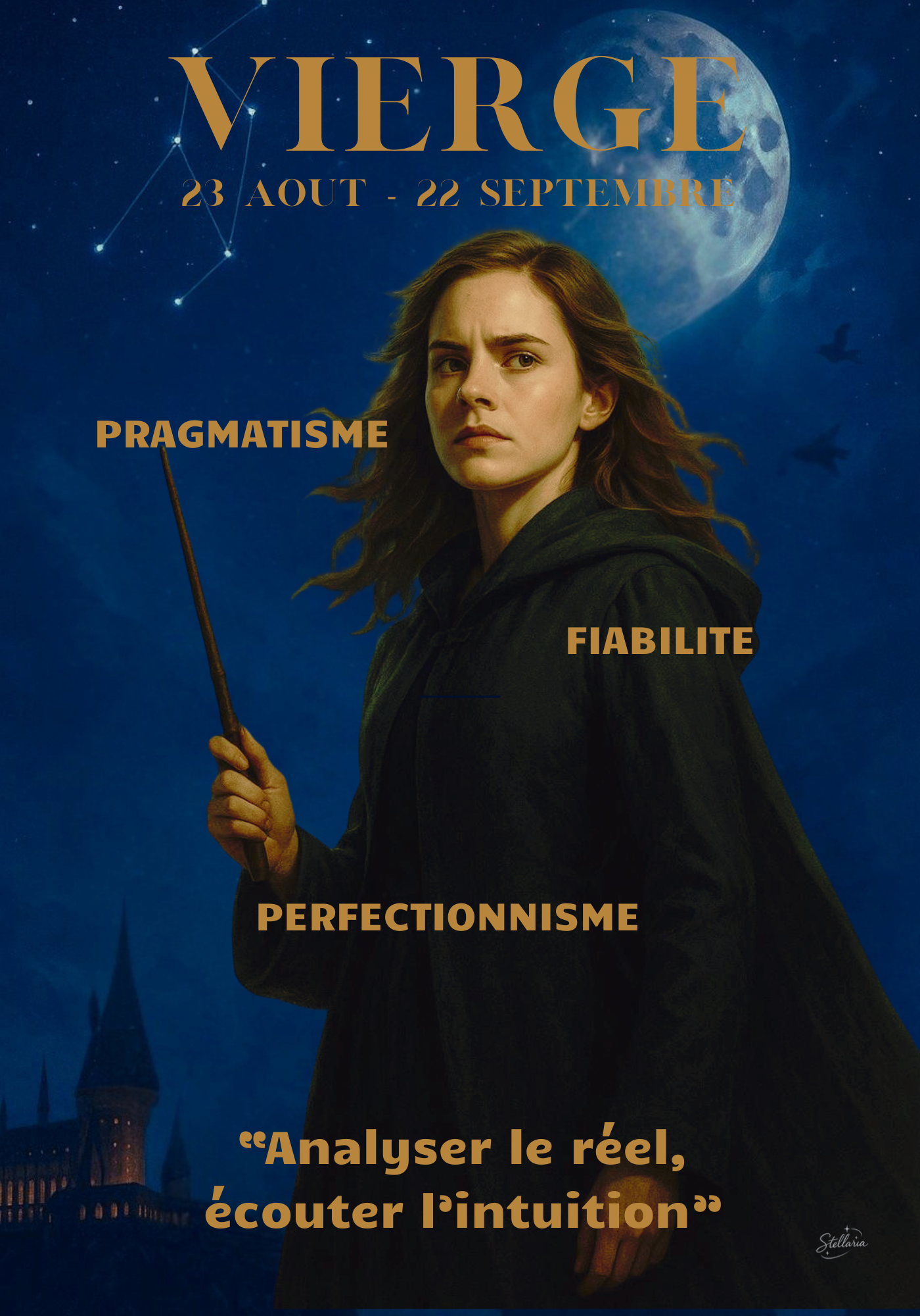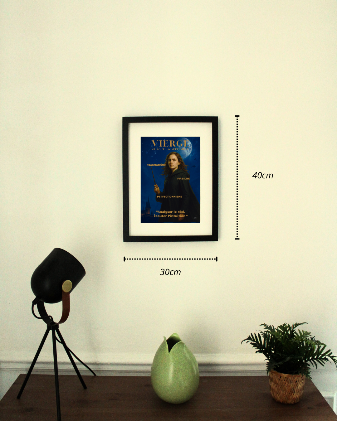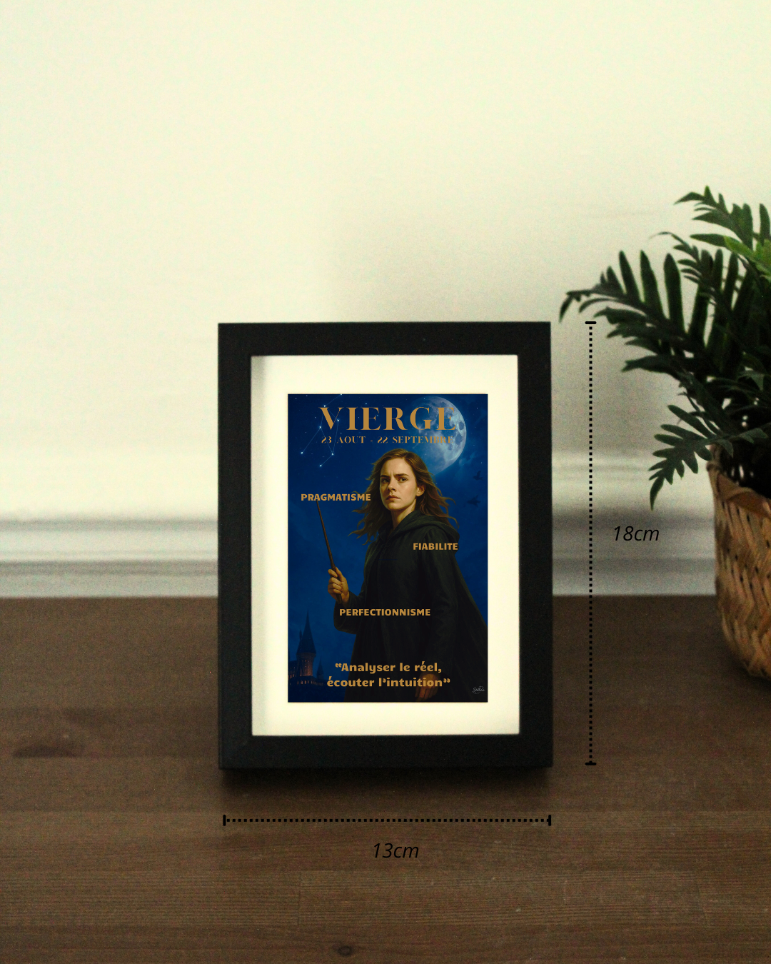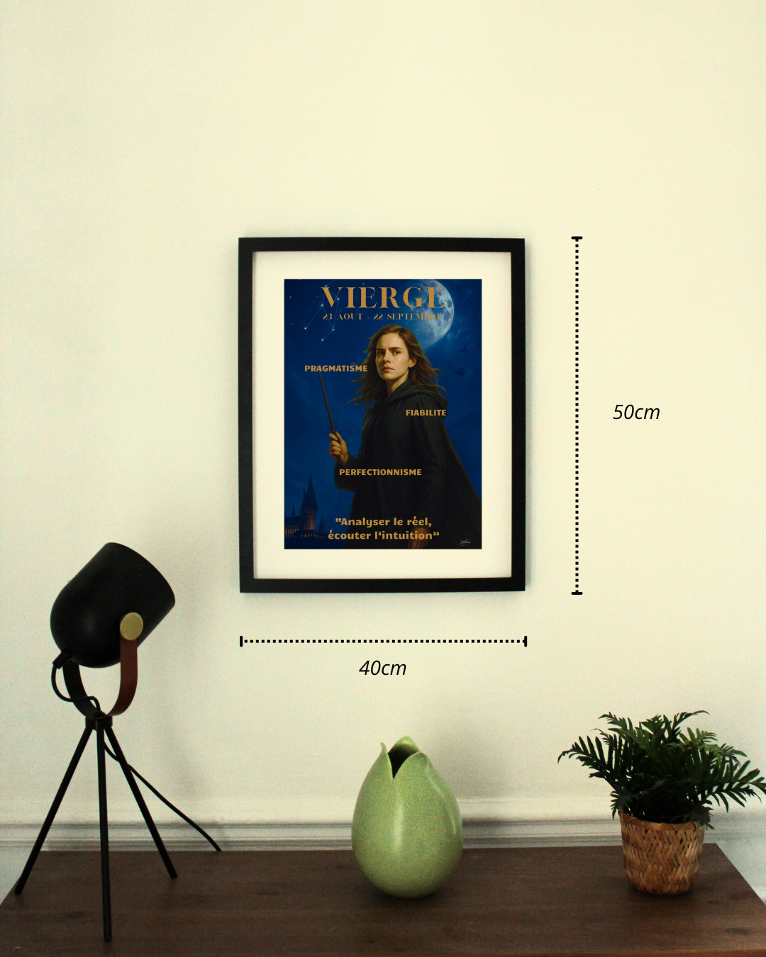 Célébrez votre signe astrologique avec cette magnifique affiche de la Vierge associée à l'héroïne du célèbre film de "Harry Potter". Design élégant et intemporel, parfait pour décorer votre intérieur dans une ambiance de cinéma.